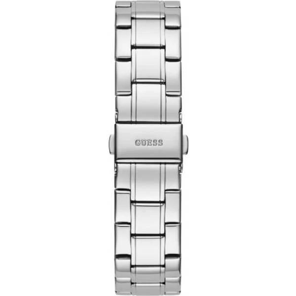 A women’s watch from Guess which runs on batteries, so you just need to change batteries if the watch stops. Swimming with this watch should be fine based on its 3 atm (30m) water protection. The silver strap is made from stainless steel. It has analogue hands for a more classic look.