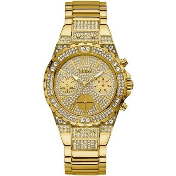 A women’s watch from Guess which runs on batteries, so you just need to change batteries if the watch stops. The hands on this watch is of the classic, analogue kind. Stainless Steel is one of the available materials for the strap. This watch will provide you with water protection measured to 5 atm (50m).