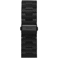 A men’s watch from Guess which runs on batteries. Just swap them out if the watch stops. The 44 mm watch face , has analogue hands and is 13 millimetres thick with a stainless steel case. The black strap is made from stainless steel. This watch will provide you with water protection measured to 5 atm (50m).
