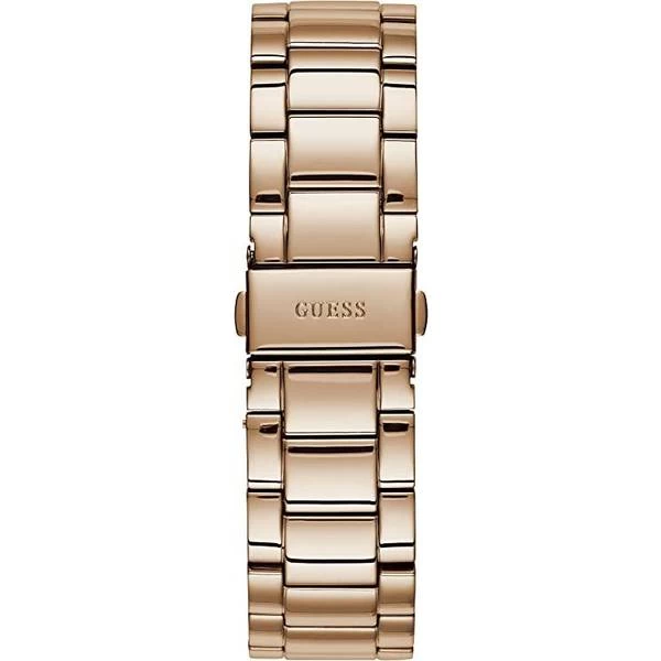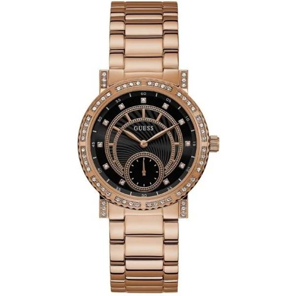 A women’s watch from Guess which runs on batteries. Just swap them out if the watch stops. Swimming with this watch should be fine based on its 5 atm (50m) water protection. Stainless Steel is one of the available materials for the strap. The watch face, hands and case make for a great design.