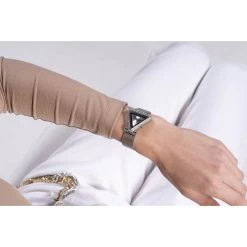 - Case: Triangle, Silver-Tone Stainless Steel with crystals, 34mm