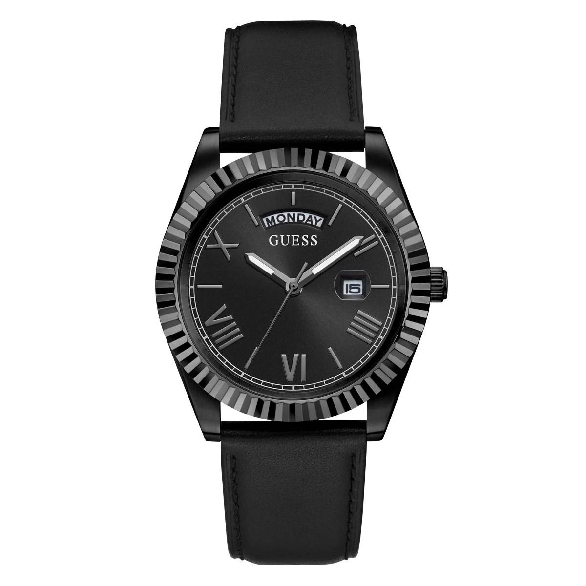 This Mens watch has a classic look that never gets old. This coin edge bezel is integrated with a smooth silicone strap and features a day of the week window at the 12 o’clock hour with a bubble date at 3 o’clock. Water-resistant 50M. 42mm stainless steel case.